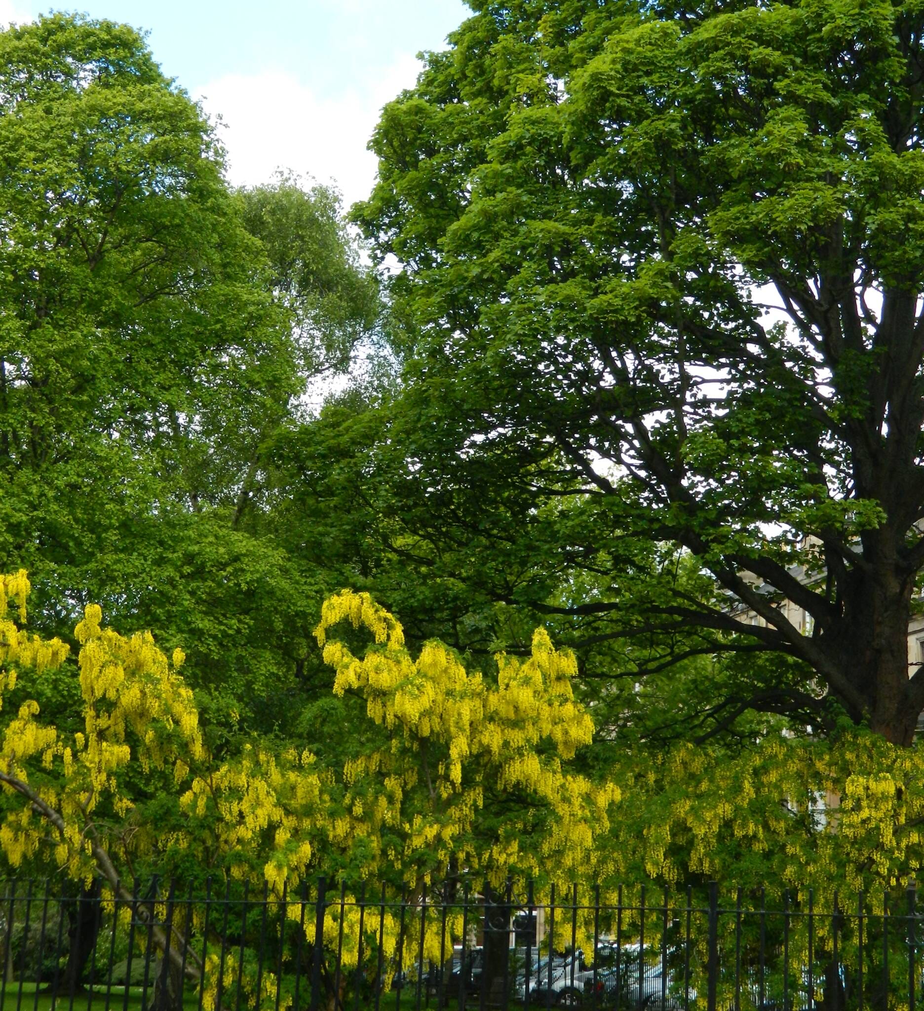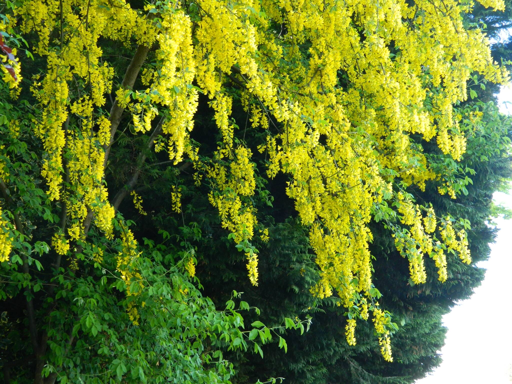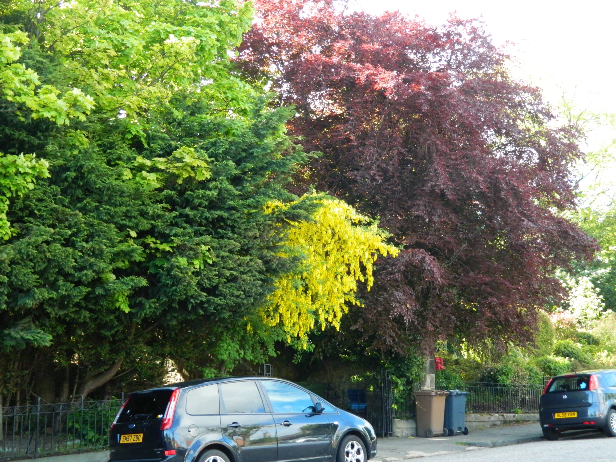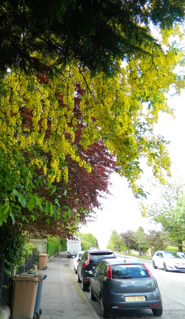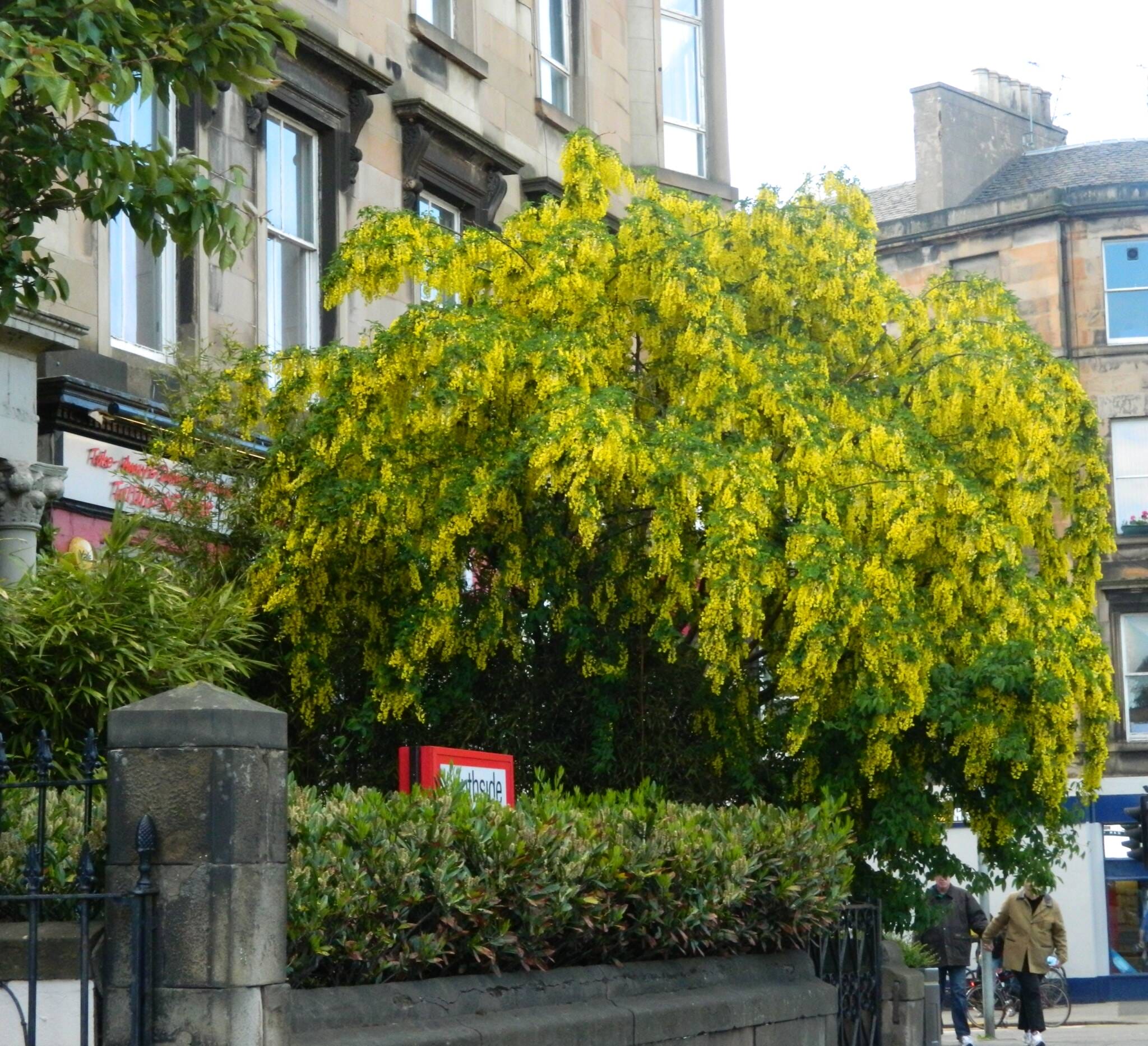 Edinburgh’s labernum trees come into their own in May and June, rarely noticed the rest of the year, and this year they are especially spectacularly yellow, especially against the red and bright green of other trees, or alone in an otherwise tree-less street.